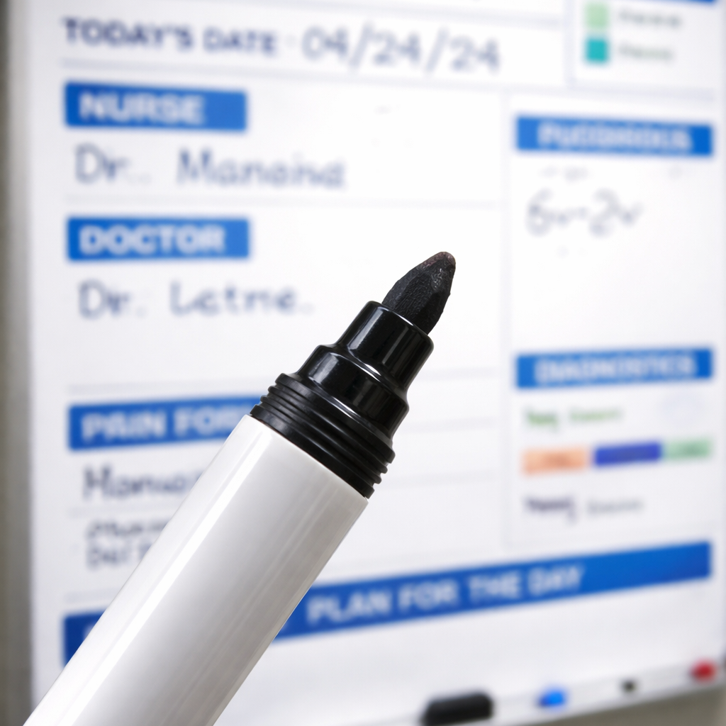It’s as simple as a dry erase pen. I use different colors so that the board is “seen”!